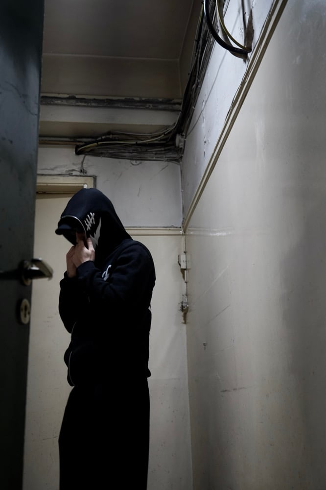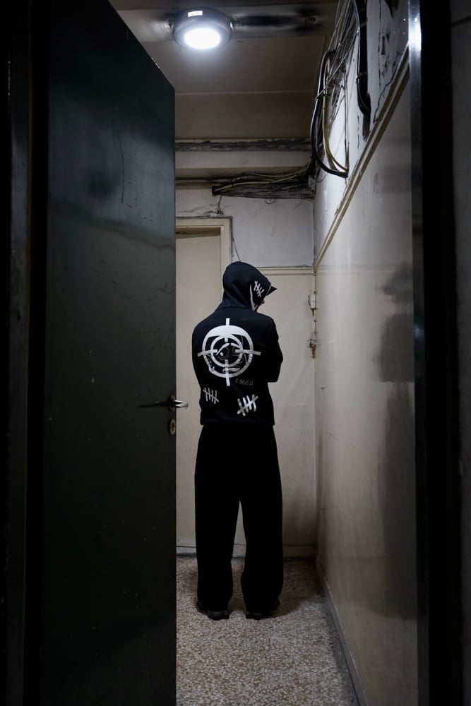 Black zip hoodie.
